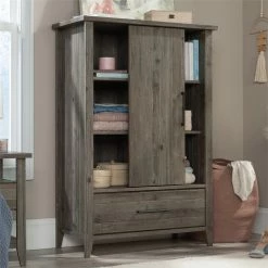 Flash Sale 🛒 Sauder Summit Station Engineered Wood Armoire With Sliding Door In Pebble Pine ⭐