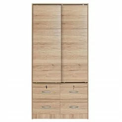 Hot Sale 👍 Better Home Products Sarah Modern Wood Double Sliding Door Armoire Natural Oak 🥰