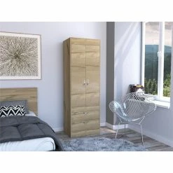 Promo ๐ Tuhome Furniture TUHOME Lisboa Armoire- Ash / White Engineered Wood – For Bedroom ๐