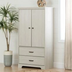 Outlet ๐ Better Home Products Harmony Wood Two Door Armoire Wardrobe Cabinet In Gray ๐