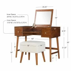 Top 10 🎁 Costway MDF Vanity Makeup 👗 Dressing Set With Round LED Mirror In Navy Blue 😉