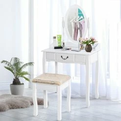 Best Pirce ๐งจ Costway Contemporary Pine Wood Vanity Table Set With 2 Big Drawers In White ๐