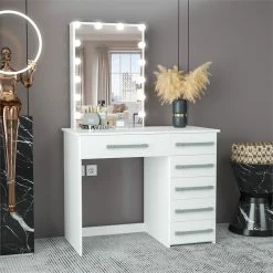 Best Pirce ๐งจ Boahaus Phoebe 6-Drawer Modern Wood Lighted Vanity With Mirror In White ๐