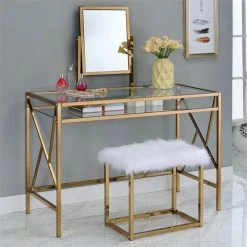 Best Sale โ๏ธ ACME Furniture ACME Coleen Vanity Desk Set In Black & Brass Finish โค๏ธ