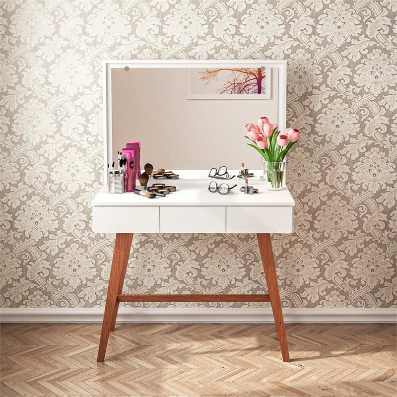 New โค๏ธ Boahaus Alice 3-Drawer Modern Wood ๐ Dressing Table With Mirror In White ๐