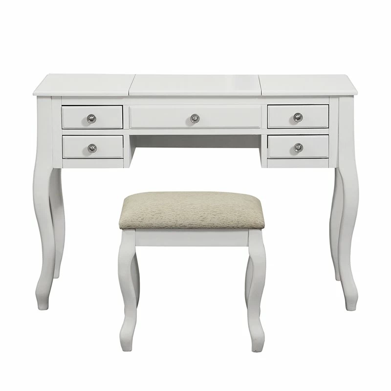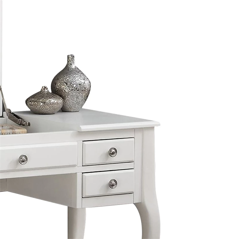 Budget π Bowery Hill Furniture Wood Vanity Set With Stool And Mirror In White π