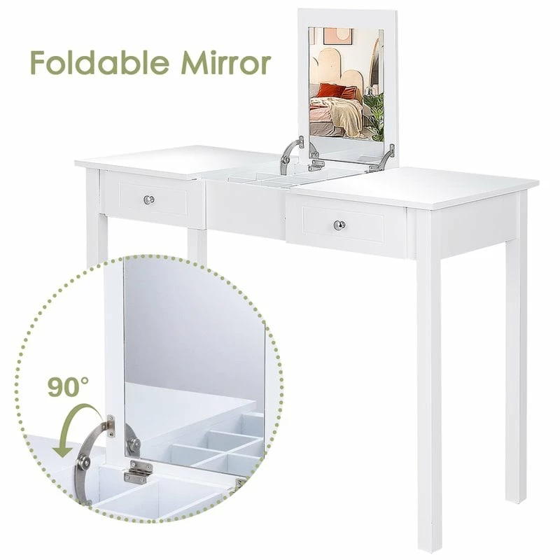 Outlet π₯ Costway MDF And Wood π Dressing Table Set With Flip-top Mirror In White β