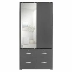 Best Sale 🛒 Better Home Products Sarah Double Sliding Door Armoire With Mirror In Dark Gray 🎉