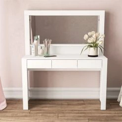 New π― Boahaus Calypso 3-Drawer Modern Wood Makeup Vanity With Mirror In White π§¨