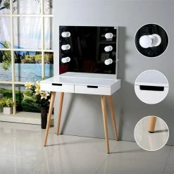 Outlet π CRO Decor Ciccarelli Solid Wood Vanity With Mirror White Vanity Table With Light π