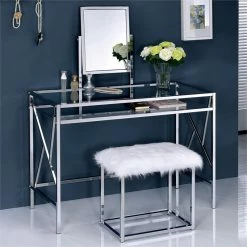 Outlet βοΈ Bowery Hill Contemporary Metal 3-Piece Bedroom Vanity Set In Chrome π